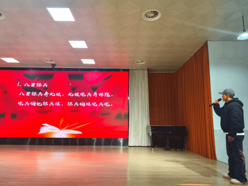 主持人带领观众进行趣味绕口令,一时间,观众席上充满了大家努力朗读绕口令的声音,即使有些观众在台上因为紧张而出现了些许失误,也依然不影响现场高涨的热情与欢乐活跃的活动氛围。